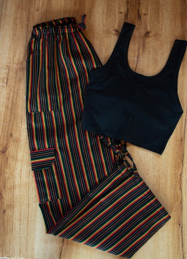 Pantalón de algodón 100% tela similar al aguayo, ideal media estación.